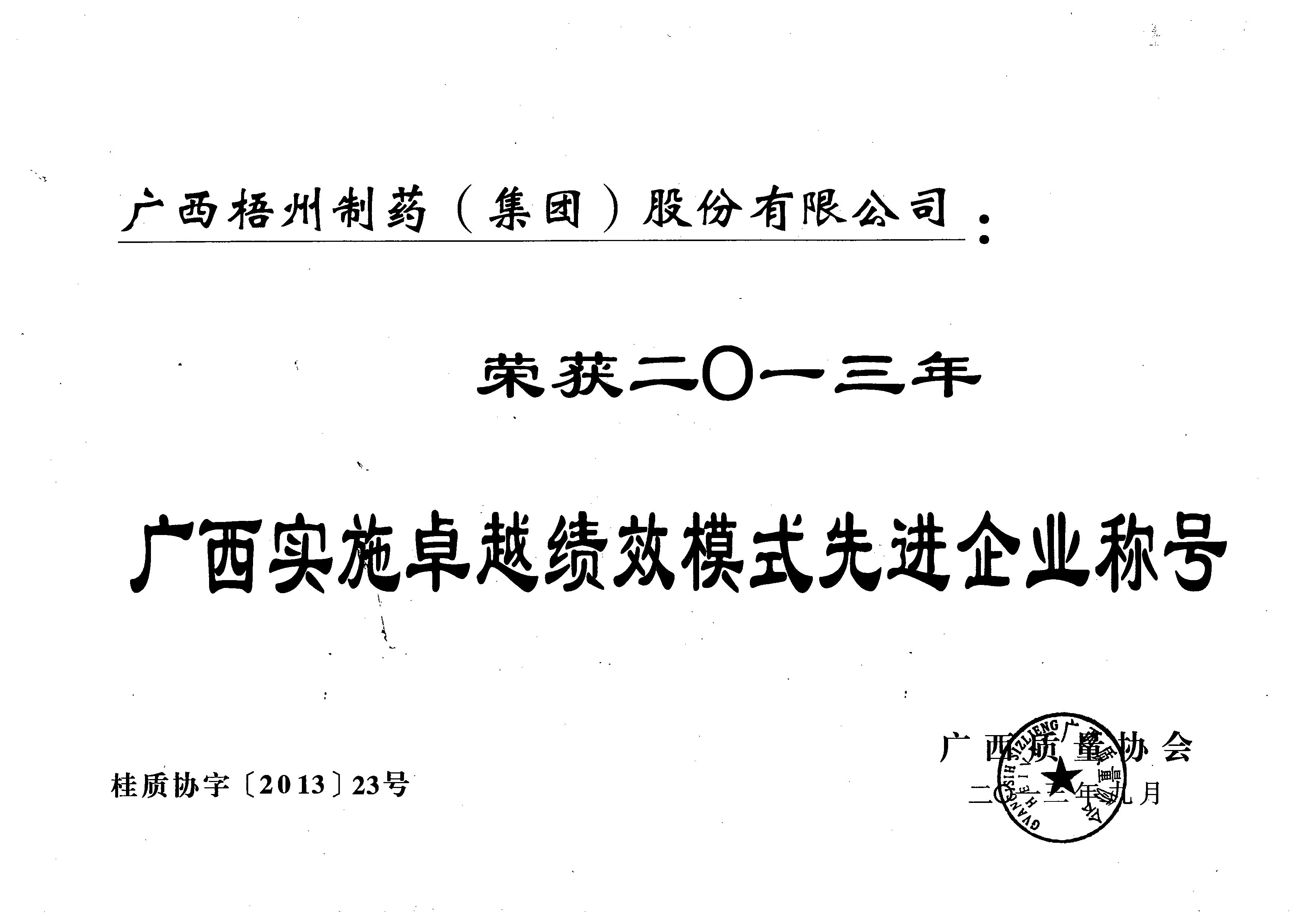 荣获2013年广西实施卓越绩效模式先进企业称号