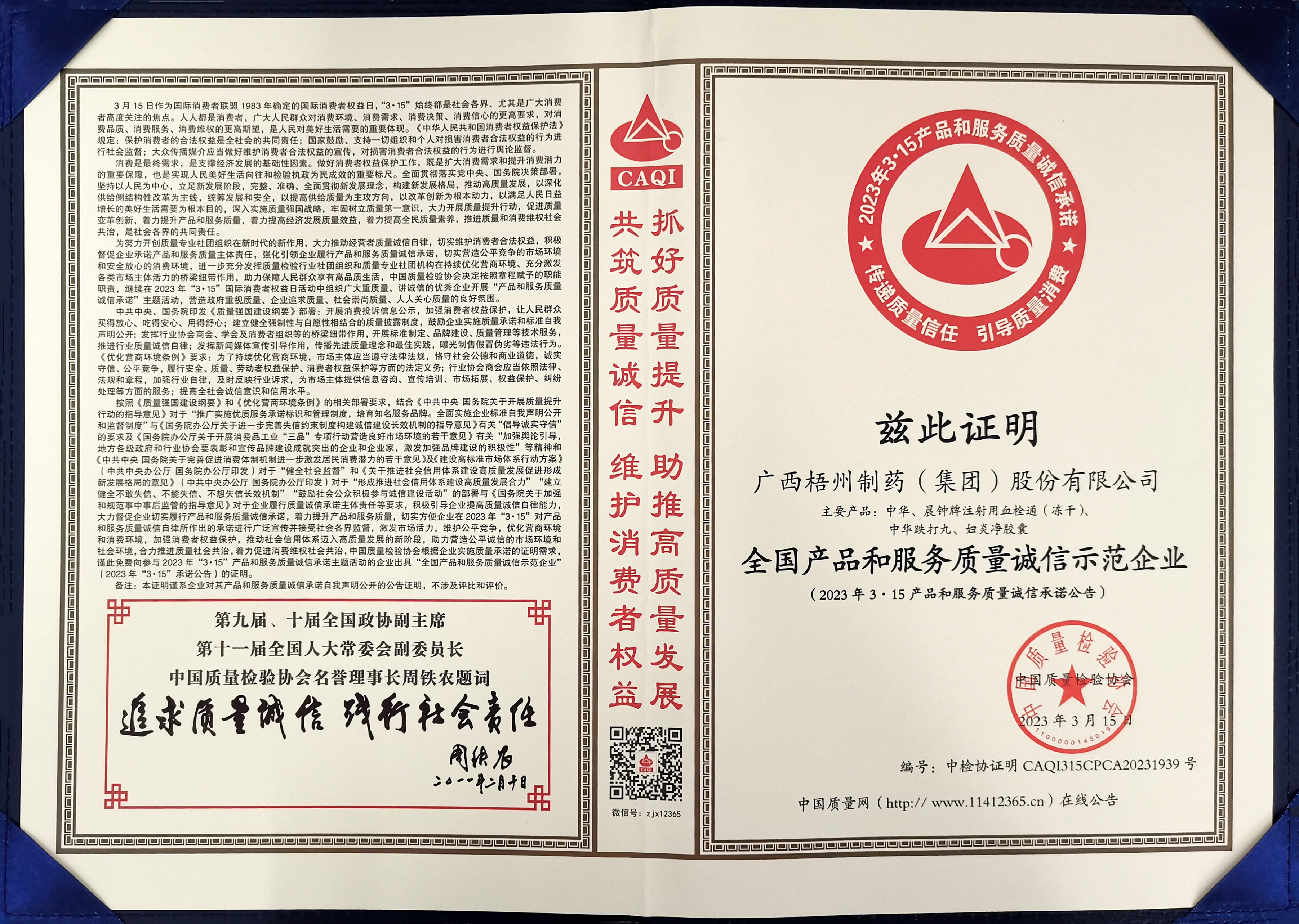 2023年全国质量诚信先进企业