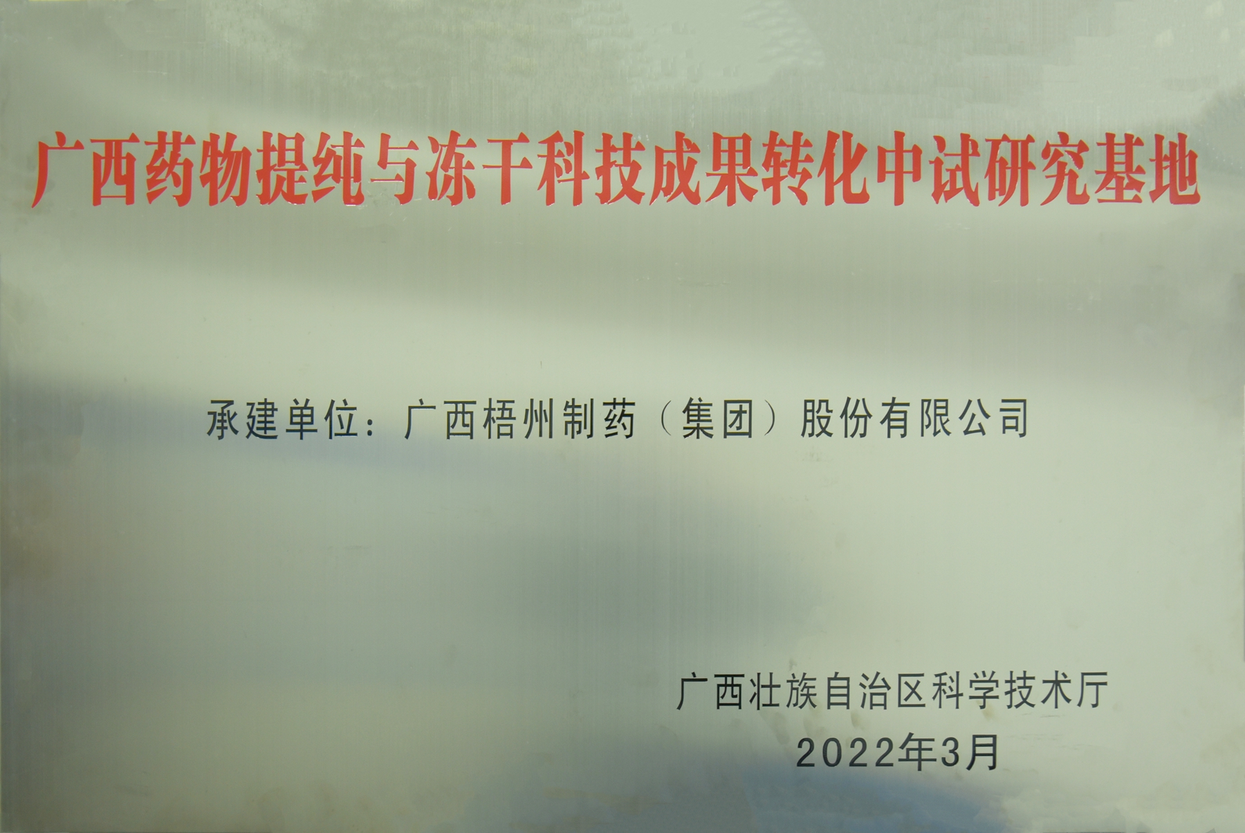 威廉希尔williamhill评为广西药物提纯与冻干成果转化中试研究基地