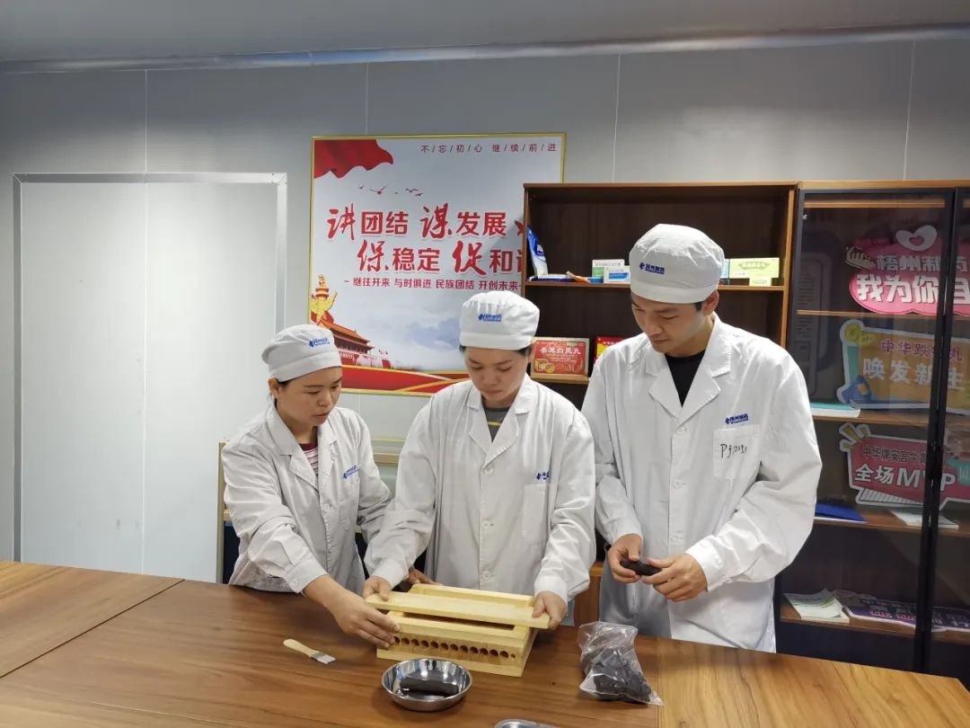 作为“中华跌打丸制作技艺”非遗项目的第五代传承人,雷洁萍对于团队人才的培养尤其重视,2021年创立了 “雷洁萍劳模工匠人才创新工作室”,带头开展非遗技术保护、带徒传艺、工艺革新、岗位练兵等工作,每年开展至少200场专业技能培训。她还利用多种形式,如青年宣讲会、培训会等进行质量管理小组知识、质量工具运用的经验分享,引导青年员工运用系统、科学的方法进行质量改进活动,不断创新,全面提升产品质量。