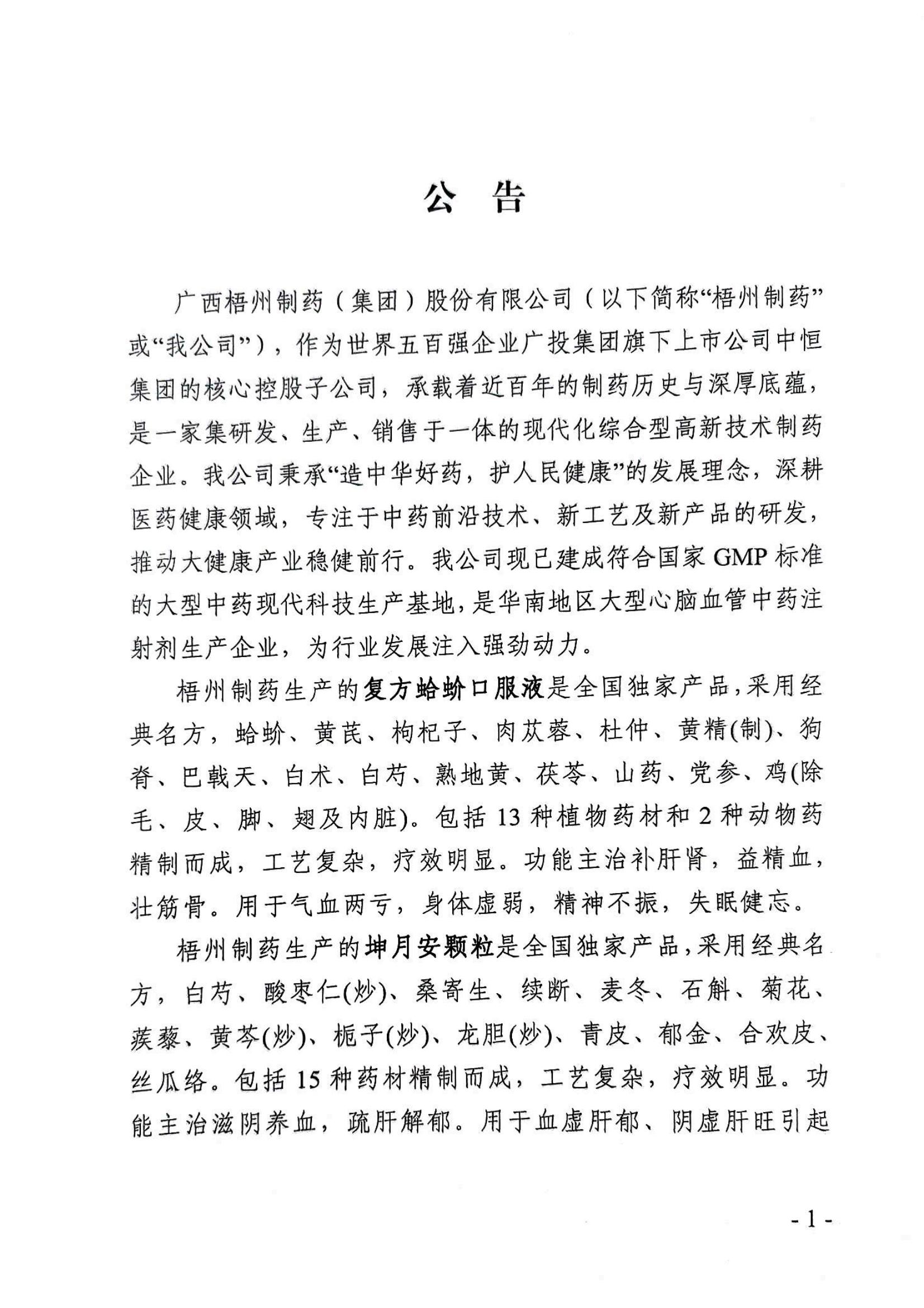 复方蛤蚧口服液、坤月安颗粒招选公告